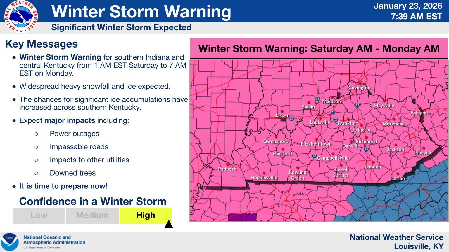 The NWS Louisville office is expressing high confidence in this system, which is never a phrase you want to hear before a winter storm. Forecasters are warning about widespread heavy snowfall combined with ice, and they've specifically noted that chances for significant ice accumulation have increased across southern Kentucky.